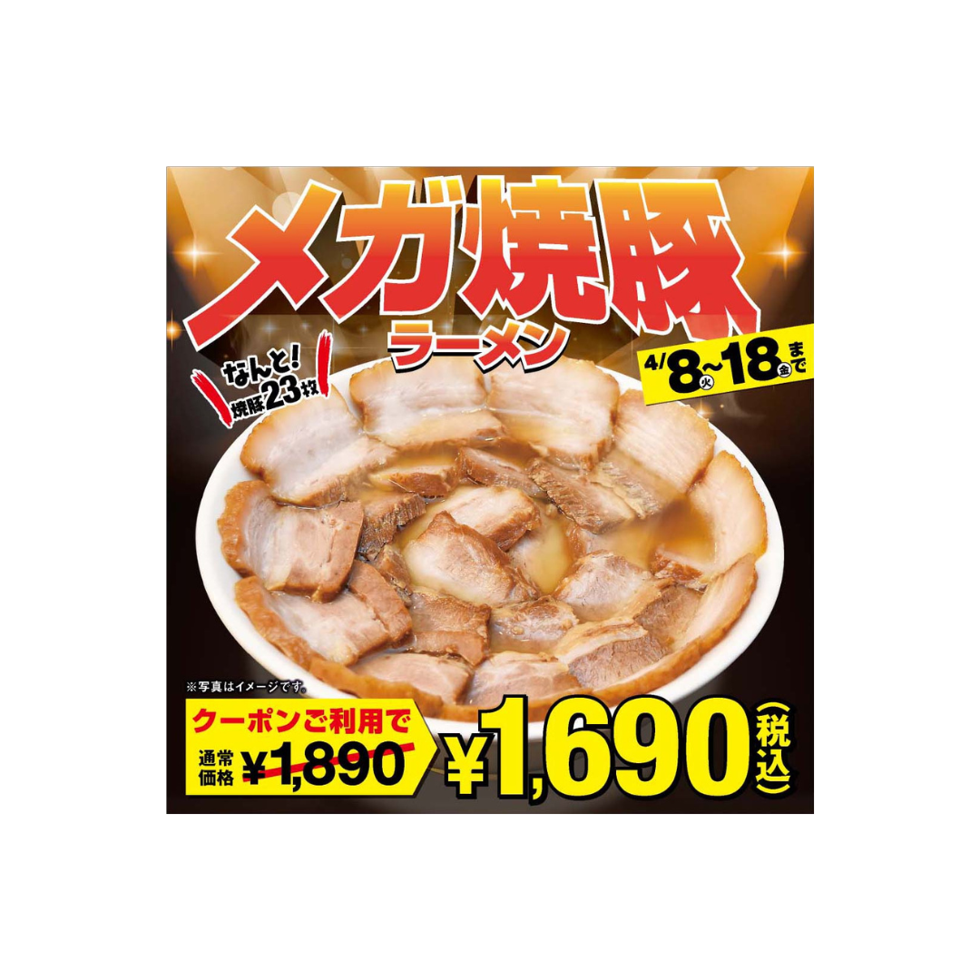 大人気企画をこの春も開催!こだわりのトロ旨焼豚(チャーシュー)を23枚、麺が隠れるほど豪快に盛り付けた「メガ盛り焼豚ラーメン」を11日間限定でご提供いたします。通常メニュー「焼豚ラーメン」の焼豚が13枚に対し、この「メガ … 続きを読む 『焼豚まみれ祭』2025年4月8日(火)~4月18日(金)開催 焼豚の総重量はなんと230g!「メガ盛り焼豚ラーメン」を期間限定販売