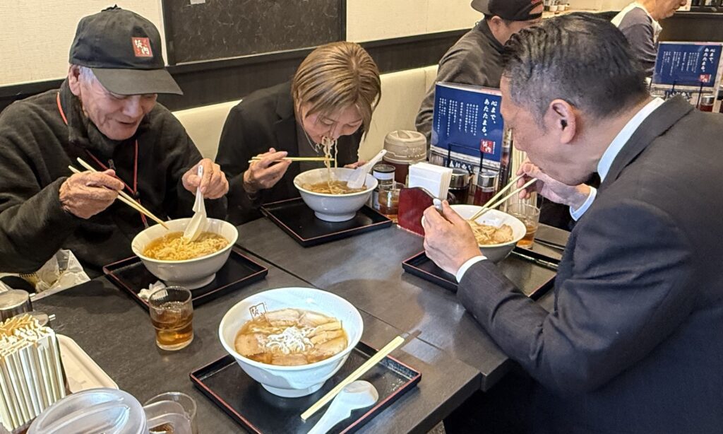 調布店オーナーも接待に同席。一緒にラーメンを食べるご様子。